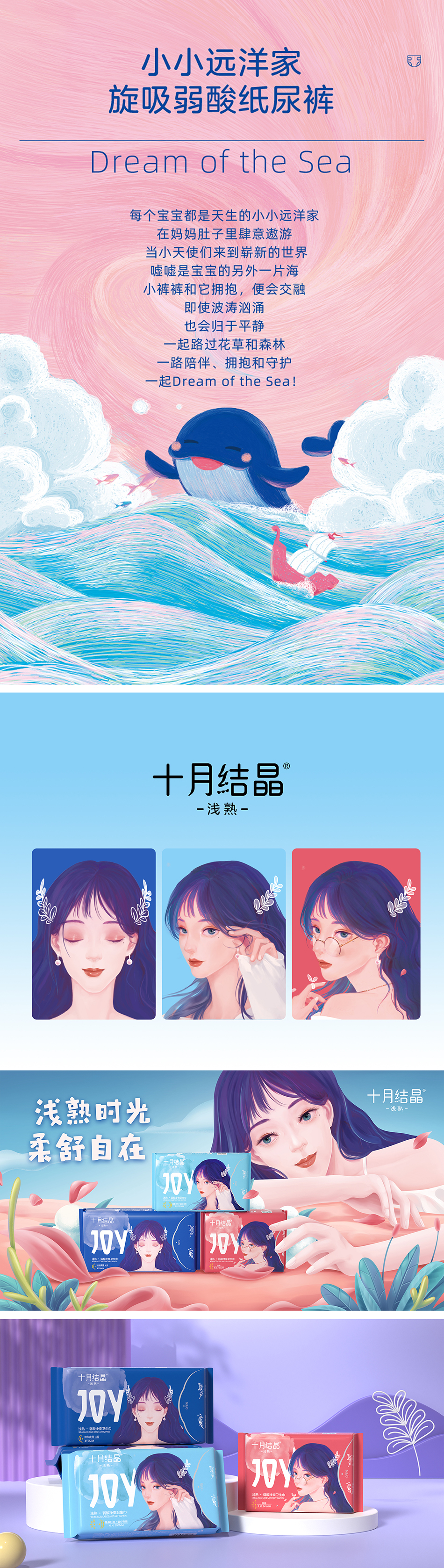 服務(wù)方案:圍繞產(chǎn)品主題訴求展開新的產(chǎn)品形象塑造,根據(jù)不同的產(chǎn)品屬性分別以符合主題的場(chǎng)景式插畫表現(xiàn)賣點(diǎn)和訴求,嬰童類產(chǎn)品著重展現(xiàn)美妙童趣,女性護(hù)理產(chǎn)品刻畫女性淺熟之美,有效強(qiáng)化產(chǎn)品個(gè)性及價(jià)值。
