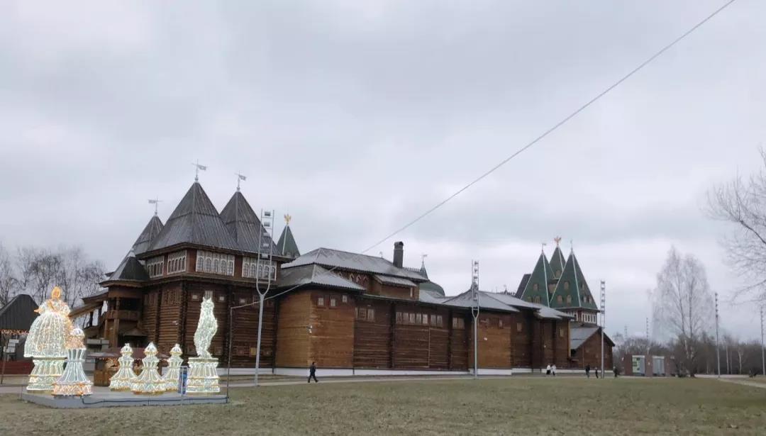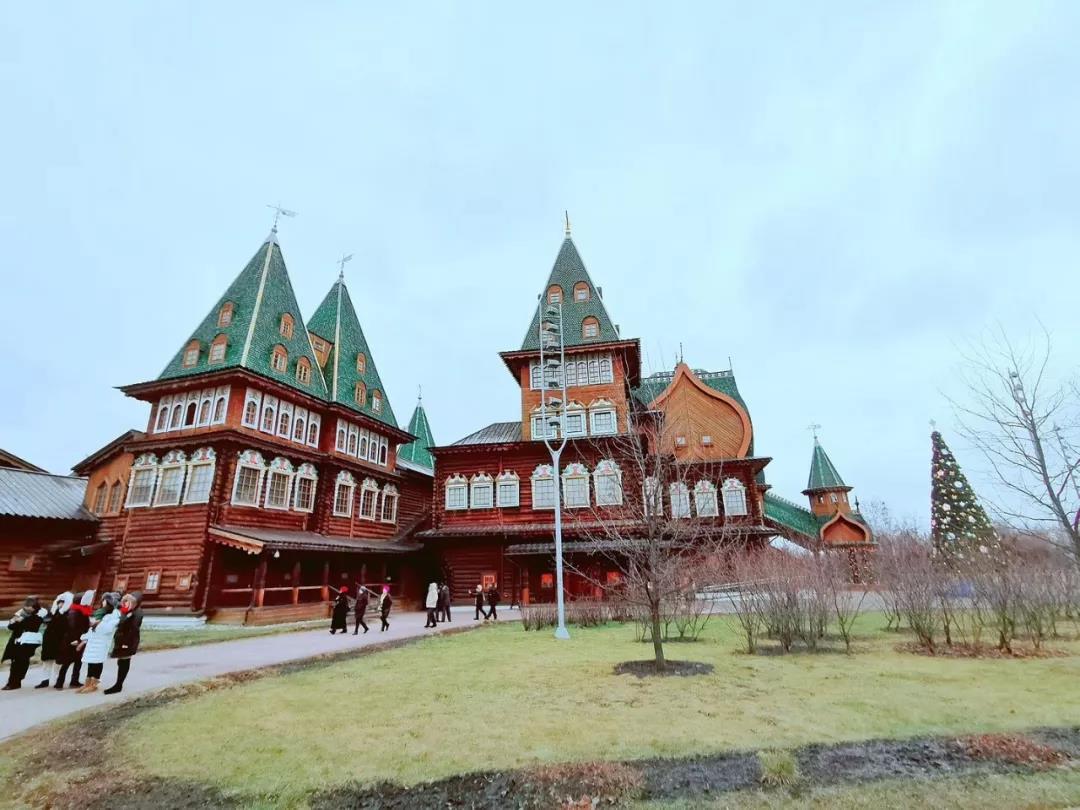 下一站是卡洛明斯克莊園,它擁有“世界第八大奇跡”的美譽(yù),主宮殿由全木質(zhì)結(jié)構(gòu)并采用榫卯原理建成,共有270個(gè)房間和3000扇窗戶,絕對(duì)是工藝的極高造詣。這時(shí)天上零星下起了小雪,為行程帶來(lái)了幾分美意。