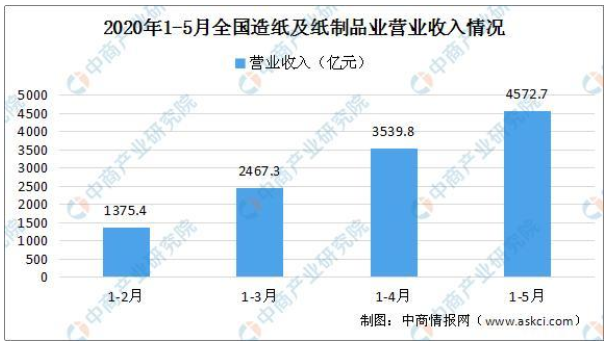 從行業(yè)效益情況來看:數(shù)據(jù)顯示,2020年1-5月,全國造紙及紙制品業(yè)營業(yè)收入4572.7億元,同比下降11.5%;利潤總額221.3億元,同比增長5.6%。