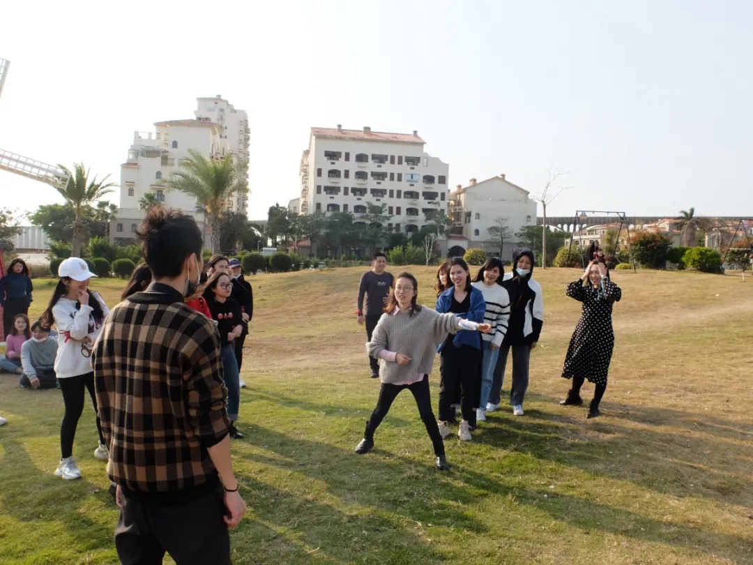之后,就是集體活動(dòng)時(shí)段。藍(lán)天和青草坪,延續(xù)著遙遠(yuǎn)世界的風(fēng)景,此刻也聚集了所有的一方小伙伴。小伙伴們提前被劃分成四組,開始了斗智斗勇斗歡樂的環(huán)節(jié)。趣味指令、你比我猜和猜拳對擂賽依次進(jìn)行,留下了一個(gè)個(gè)矯健的身影。草坪上回旋的是小伙伴們歡悅的笑聲,還有主持人耐心維持秩序的大嗓門。無辜的勝負(fù)欲,成了大家一致的情緒。幾輪游戲下來,還不熟絡(luò)的新同事已然走近彼此,有梗的,有趣的,有思想的,都是一方家人。