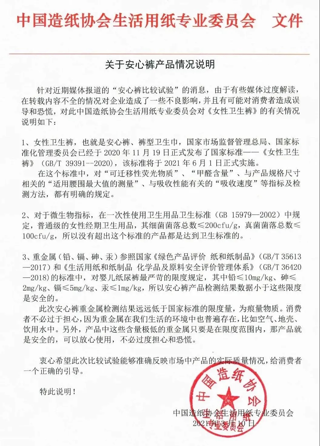 對于此次風(fēng)波,衛(wèi)生用品協(xié)會也出面為以上品牌“伸冤”,并給出了具體說明,強(qiáng)而有力地回?fù)袅?ldquo;標(biāo)題黨”。.jpg)