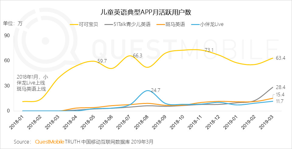 在兒童英語(yǔ)典型APP月活躍用戶數(shù)來(lái)看,小伴龍活躍用戶數(shù)最高為63.4萬(wàn),其次為51Talk青少兒英語(yǔ)。