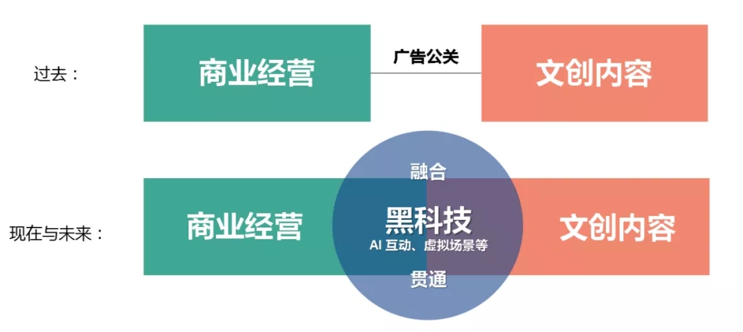現(xiàn)在與未來:商業(yè)運營和文創(chuàng)內(nèi)容之間形成彼此需要、高度融合的關(guān)系,中間的催化劑是不斷變革發(fā)展的黑科技。