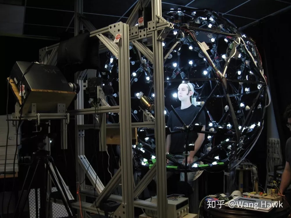 Light stage技術(shù)正是通過構(gòu)造相機陣列,以多角度、高精度照片,既還原拍攝人物的三維結(jié)構(gòu),也獲取面部的反射信息,從而能在不同環(huán)境光下重構(gòu)人臉模型光效。
