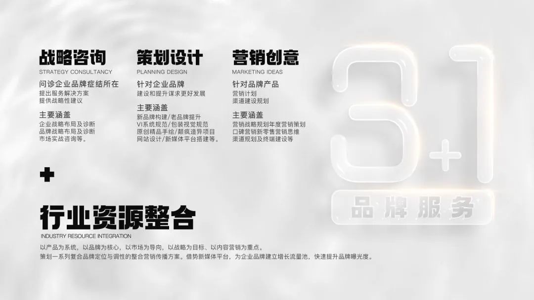 在一方品牌營銷管理堅(jiān)持以品牌思維引領(lǐng)生活快消品行業(yè),致力于讓每個(gè)品牌更有價(jià)值,讓每個(gè)項(xiàng)目落到實(shí)處。“3+1品牌服務(wù)理念”精心打造戰(zhàn)略咨詢、策劃設(shè)計(jì)及營銷創(chuàng)意三大核心板塊,加之整合行業(yè)產(chǎn)業(yè)鏈,以提供定制型全案服務(wù),驅(qū)動品牌的市場價(jià)值,締造行業(yè)第一綜合型服務(wù)品牌!