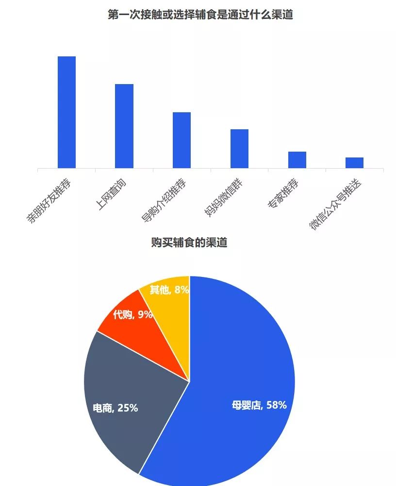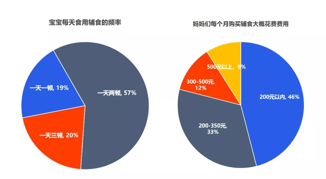 但是對于品牌而言,最重要的是洞察需求,一個好的洞察,一定是清晰揭示消費者的傾向,暗示了一個市場機會。究竟品牌入局輔食的機會有多大,媽媽們是如何看待輔食的? 從當前的嬰幼兒用品的采購情況來看,媽媽負責嬰幼兒用品的采購,用戶占比超七成。奶爸也會經常協(xié)助寶媽,參與到嬰幼兒用品的采購活動中,用戶占比為41.7%。 從近一年的百度指數(shù)來看,目前關注輔食最突出的地域是廣州、浙江、江蘇、山東、北京等,可見,當前一二線城市的消費者對輔食的認知教育有所提高,但是低線城市的消費者對寶寶輔食的添加還不重視。 其次,從年齡段來看,“30-39歲”的消費人群對輔食的關注度最高,而在這其中,女性對輔食的關注度遠高于男性。 2019年母嬰行業(yè)觀察通過線上調研近10000人數(shù)的家長進行了輔食調查,其中80后占據24%,85后占據26%,90后44%,95后4%,對輔食的態(tài)度如下: 1、幾乎所有的媽媽都認為有必要給寶寶添加輔食,并且有一半的媽媽認為要在6個月時添加,而有32%的媽媽認為在6個月-1歲開始添加,還有16%的人在6個月以前就添加輔食。 2、大部分寶寶的輔食來源都是“購買與自制”相結合,而在購買輔食時,媽媽們購買最多的類型依舊是米粉,其次則是餅干、磨牙棒等小食品、營養(yǎng)面等。 3、互聯(lián)網與社交圈對媽媽的購買決策權的影響力較大,據調查顯示,媽媽們第一次接觸或選擇輔食大多都是通過親朋好友推薦,上網查詢等。當然消費者在購買嬰兒輔食的渠道選擇上,其實與奶粉并無不同,為了保證產品的質量和安全性,同時也為了可以得到育嬰專家的指導和幫助,消費者更傾向于在專業(yè)的母嬰用品連鎖店或主流電商平臺購買食品。 4、隨著85后、90后新生代父母的崛起,他們與父輩的消費觀念并不相同,不再執(zhí)著與于進口與價格等,而是開始關注是營養(yǎng)配方,重要的是寶寶喜歡。 5、對于寶寶而言,自添加輔食開始,都是與奶粉喂養(yǎng)相結合,目前超一半的寶寶每天食用輔食的頻率都是一天兩頓。當然這在一定程度上也決定了每個月在寶寶的輔食上的花費是多少,從月消費來看,可以明顯看出200以內的將近半數(shù),當然也可以看出花費在300以上的有21%,可見,對于嬰兒食品這個特殊的品類,以及嬰幼兒這個特殊的消費人群,消費持續(xù)升級仍然明顯。近兩年來,嬰幼兒輔食高端化、有機化趨勢明顯。 近幾年來,越來越多的媽媽意識到輔食的重要性,隨著我國居民可支配的收入不斷提高,消費者投入了更多的關注給自己的孩子,作為寶寶的第二餐,消費者愿意投入更多費用,使用周期會不斷變長,且更注重輔食產品的品質和質量。可見隨著消費水平的提升,年輕父母對于對孩子的飲食質量、飲食營養(yǎng)的投入更加重視,會更追求高附加值、高品質的輔食,中國輔食市場會繼續(xù)高速發(fā)展。