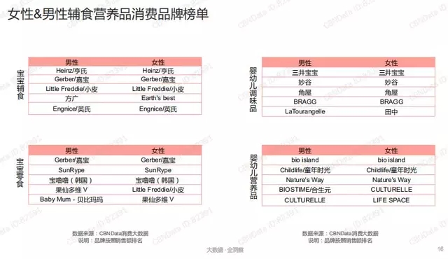 上圖所示,無(wú)論是男性還是女性在輔食營(yíng)養(yǎng)品消費(fèi)品選購(gòu)中都集中在以下幾個(gè)特定的品牌: